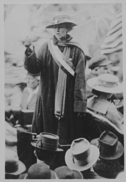Florence Bayard Hilles, giving a speech and wearing the tricolor suffragette sash. Photo:www.findagrave.com