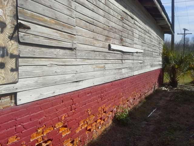 A side view of the older brick foundation structure, Note how the brick is disintegrating!